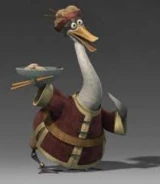 - En uno de los episodios de la serie de televisión el fue el primero en aprender un movimiento de Shifu.