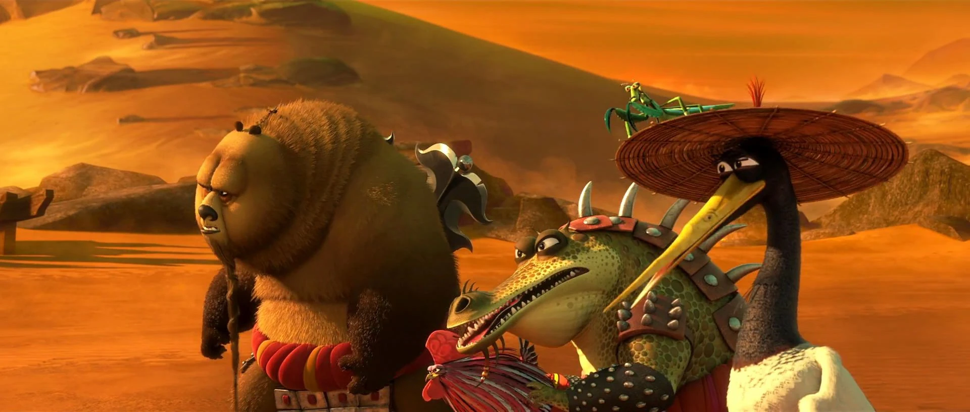 Bear with Chicken, Croc, Mantis and Crane facing off against Kai