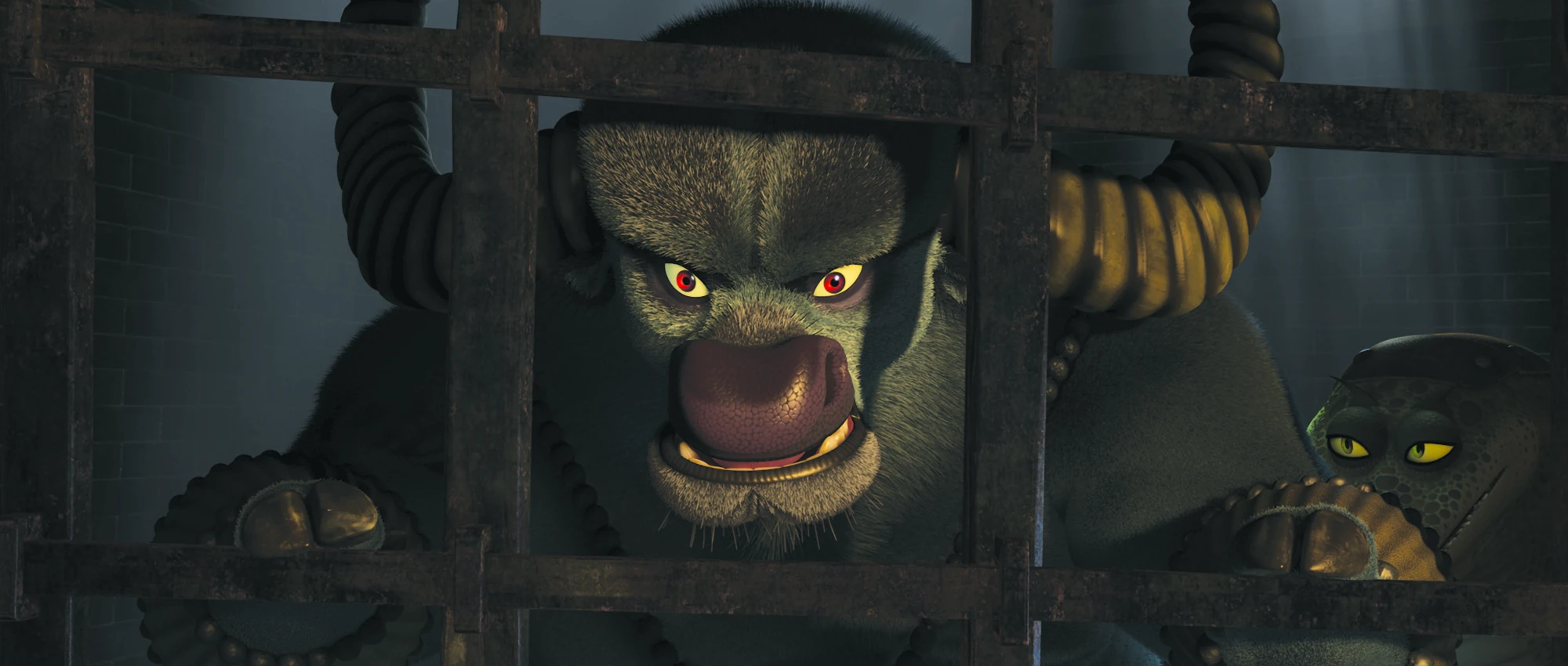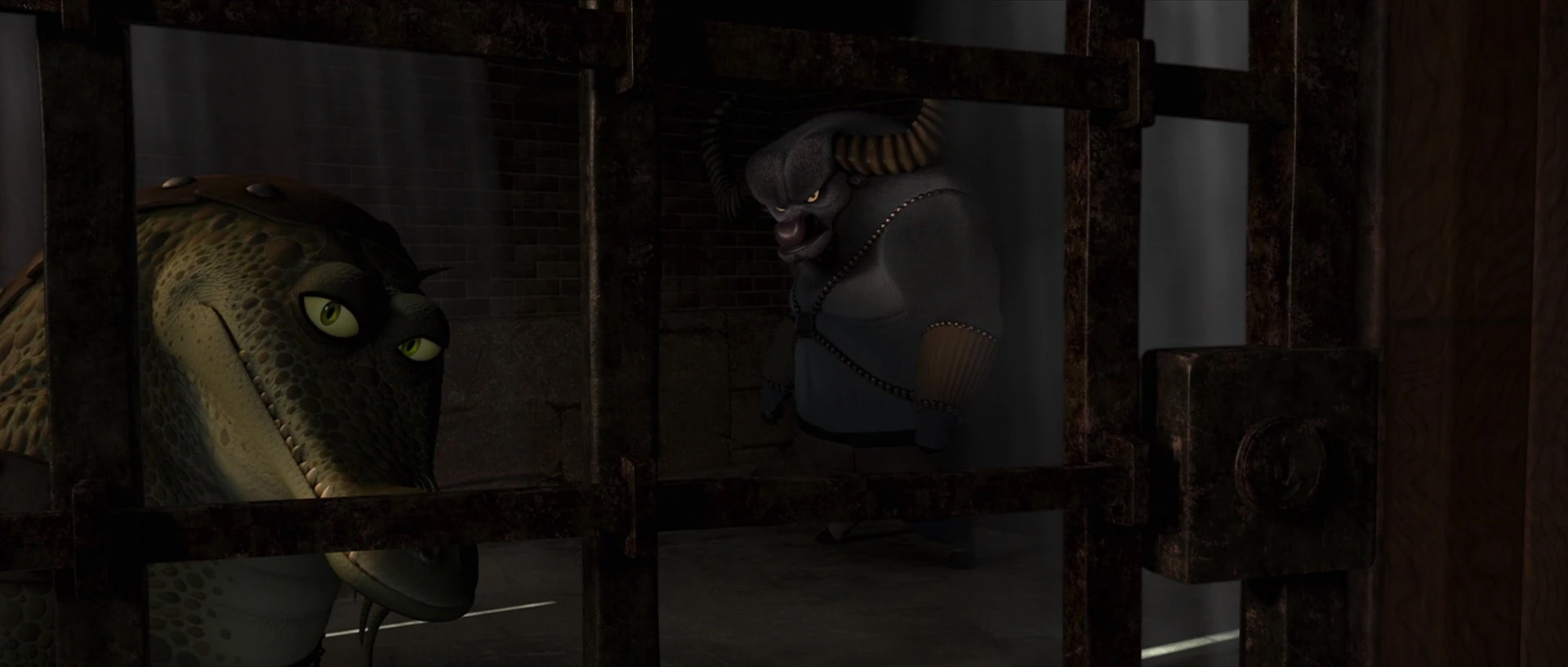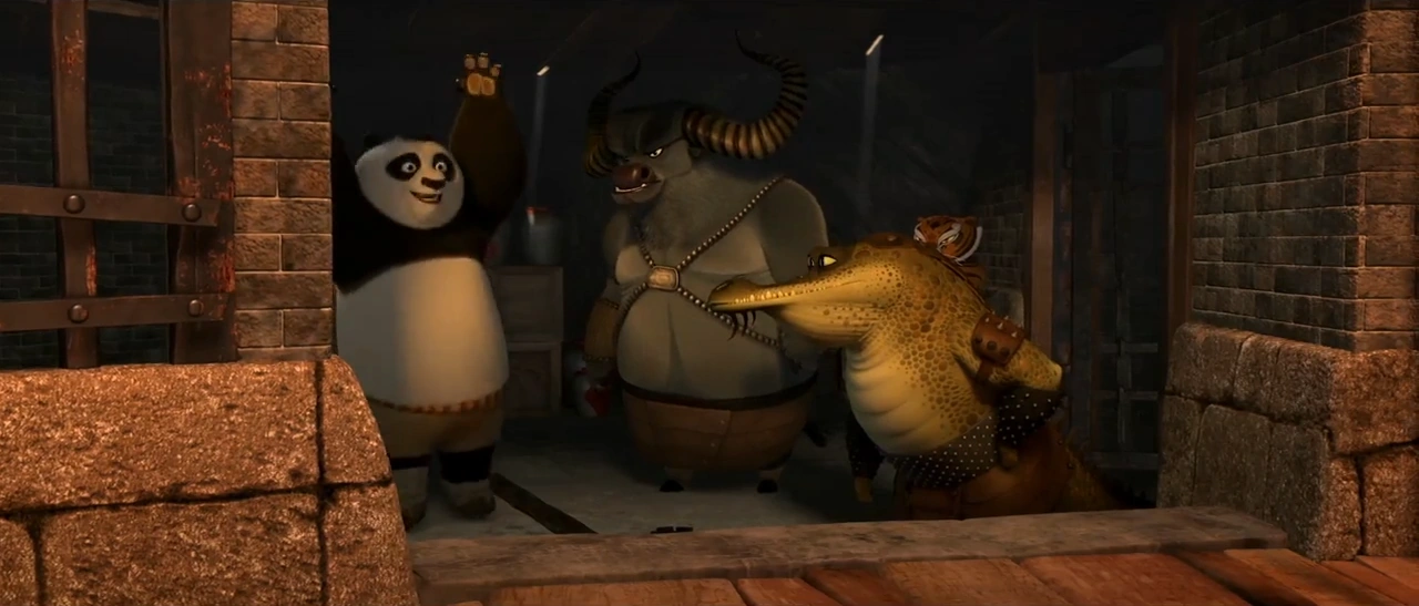 Croc and Storming Ox were held captive in the jail until Po and the Furious Five arrived to enlist their help in retaking the city and stopping Shen. While they still wished to save the city, Croc and Ox had come to the belief that kung fu was dead, and refused to leave their cell. Po and the Five were unable to convince them to help, and eventually had to leave in a hurry when Boss Wolf and his soldiers discovered them.
