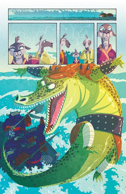In the story "173 Assassins", it was told by Po how the island of Chen Wei was nearly invaded by hundreds of assassins, who came traveling by boat in an attempt to kidnap the leader, Guru Llama. Seeing them approach, the small guru proclaimed that the assassins wouldn't cross the borders, and that there was no need to flee to safety. He was proven right as Master Croc then arose from the waters and attacked the boats, using his kung fu skills, his mace tail, and delivering quips to his opponents as the llama folk watched in amazement.