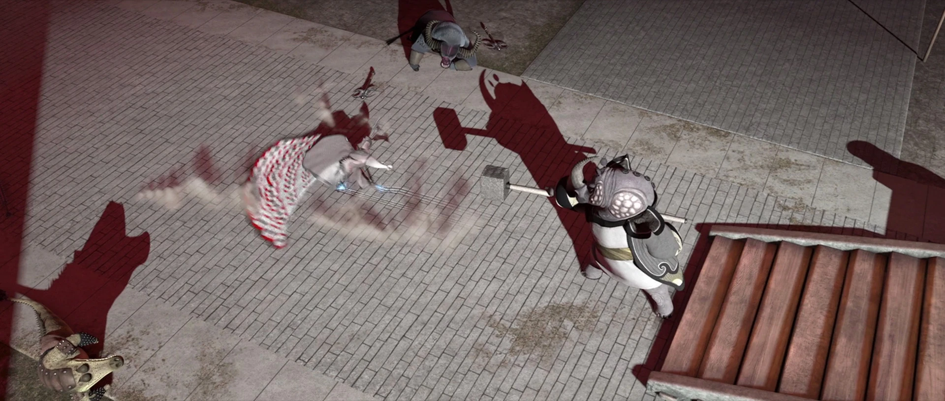 At the moment of their victory, Oogway reappeared, having captured the rest of the gangs, and praised Rhino, Ox, and Croc for being worthy warriors who had found a higher purpose to fight.