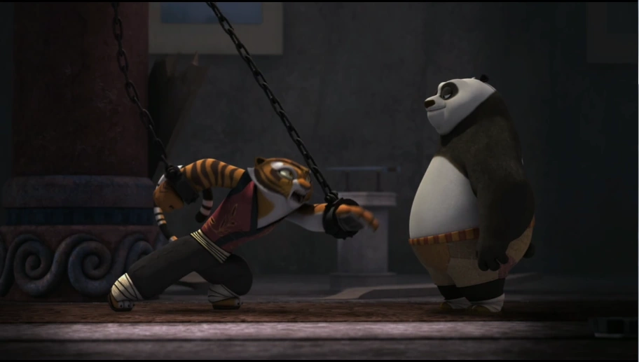 Po and Tigress accidentally released the Orbs that head to Ding's prison. After getting there, they end up dealing with Master Ding's ghost who gives them a hard time. Ding possesses Po's body to regain a physical form and then exits his prison. Soon though, Tigress gains control of the spirit orbs (much to Ding's dismay) and uses them to enter Po's mind to fight Ding. Po and Tigress are finally able to exorcise Ding's spirit from Po's consciousness. Tigress puts the orbs back and tells Po she is sorry, indicating they both have different strengths.[1]