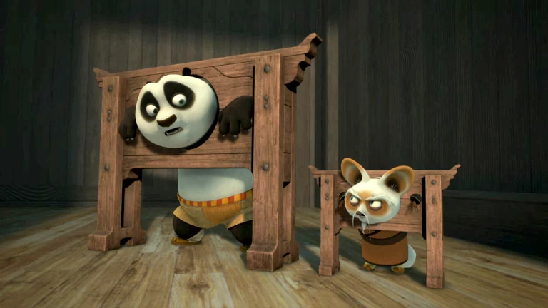 Unlike Bad Po, Good Po naturally respected Shifu, but he continuously annoyed the red panda with his sensitivity and cluelessness. While locked in the stocks, a frustrated Shifu had to resort to talking to Good Po like he was a child in order to get him to help them both escape.