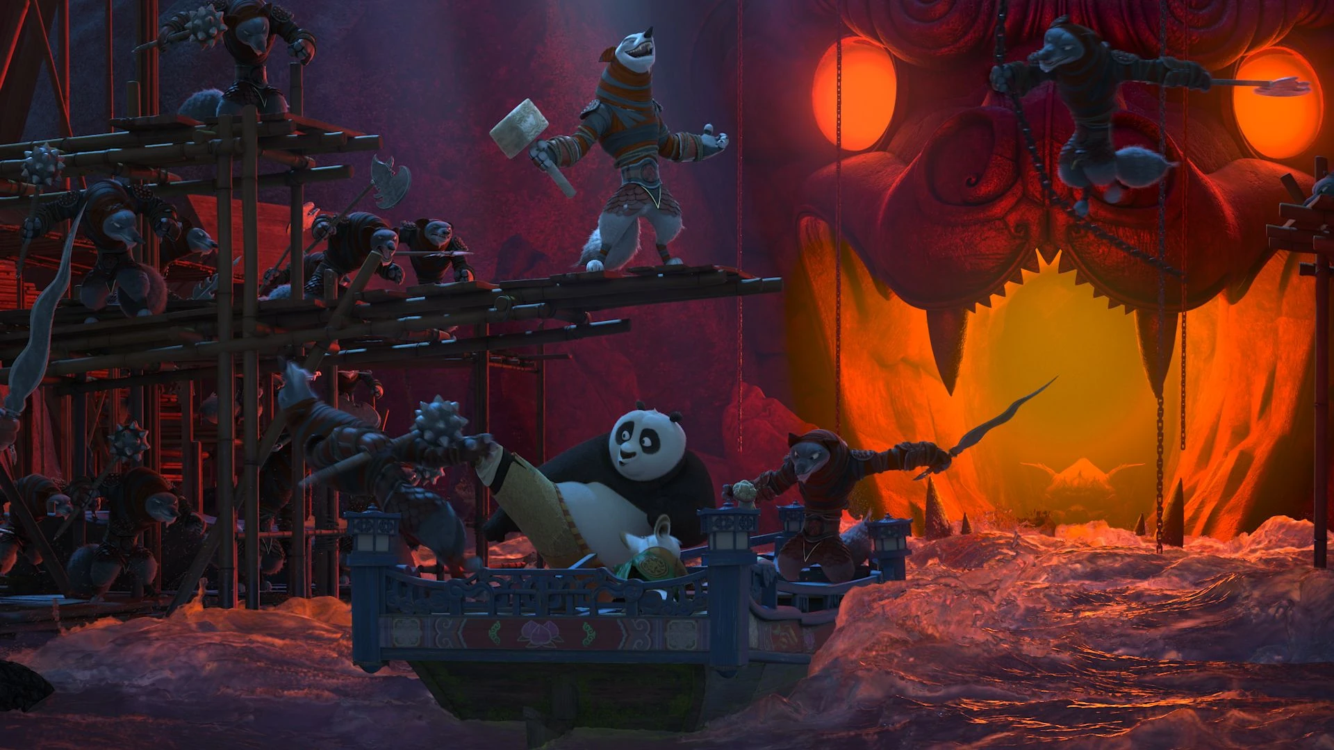Kang's wolves refers to a pack of river-dwelling wolves led by Kang. They are described by Po as "the most feared and ruthless river pirates anywhere."[1] They were featured in the theme park attraction Kung Fu Panda: The Emperor's Quest, where they aided their leader Kang in obtaining the Liquid of Ultimate Power.