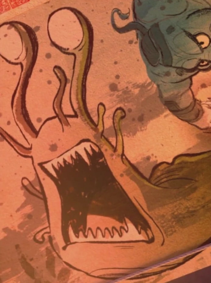 Master Snail is briefly mentioned in the episode "Mister Mastodon" when Po is reading through a comic detailing Mastodon's past exploits. Below is a picture of Mastodon's figt with Snail, to which Po's question Mastodon briefly and boastfully talks about the duel, but also notes that it was a shame that he had to kill Snail.